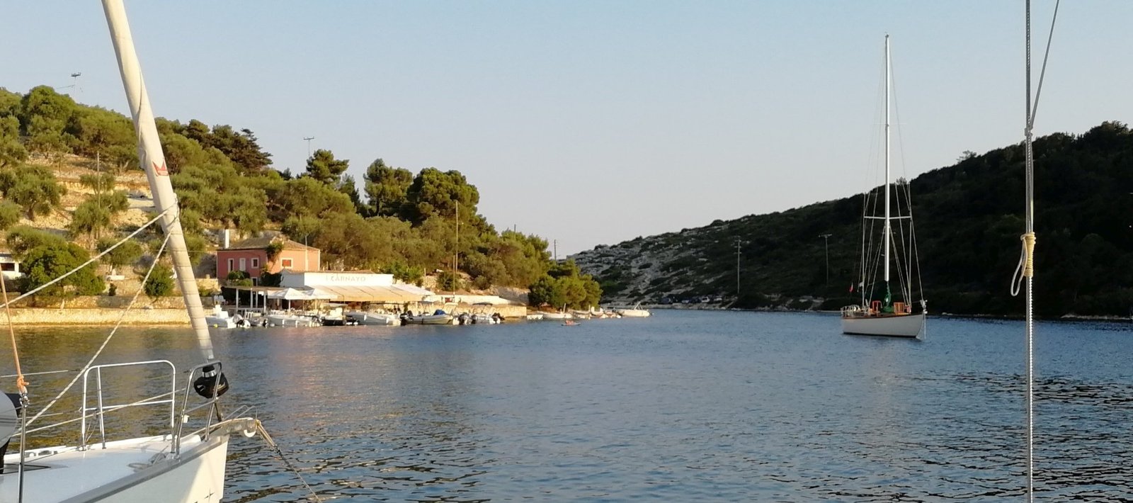 We could spend days idling around brilliant Paxos island – it’s such a special and picturesque place. But let’s spend one more night here, with the plan to take a line ashore in Mongonissi Bay. We’ll book us into one of our favourite Greek taverna for dinner (Carnayo Gold – it’s actually an Italian cafe!), having spent some idle hours earlier in the day exporing the waterfront and back lanes of incredible Gaios.