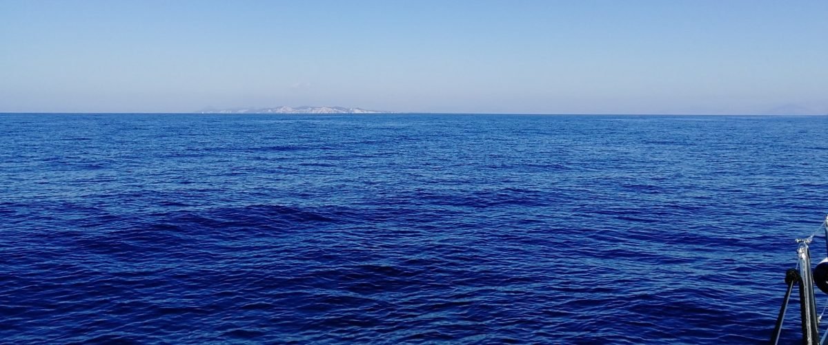 The island of Corfu comes into view as we sail north from Paxos.